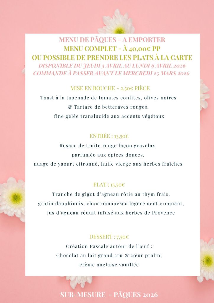 Commandez en avance, venez récupérer votre commande à L’atelier traiteur ou FAITES VOUS LIVRER… puis dégustez !